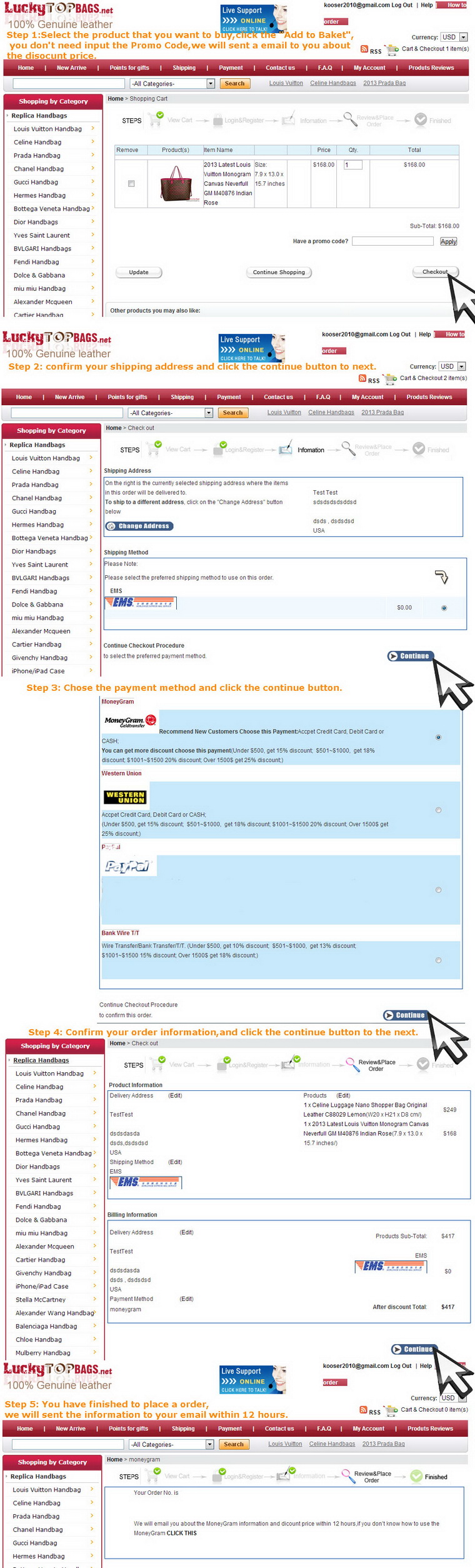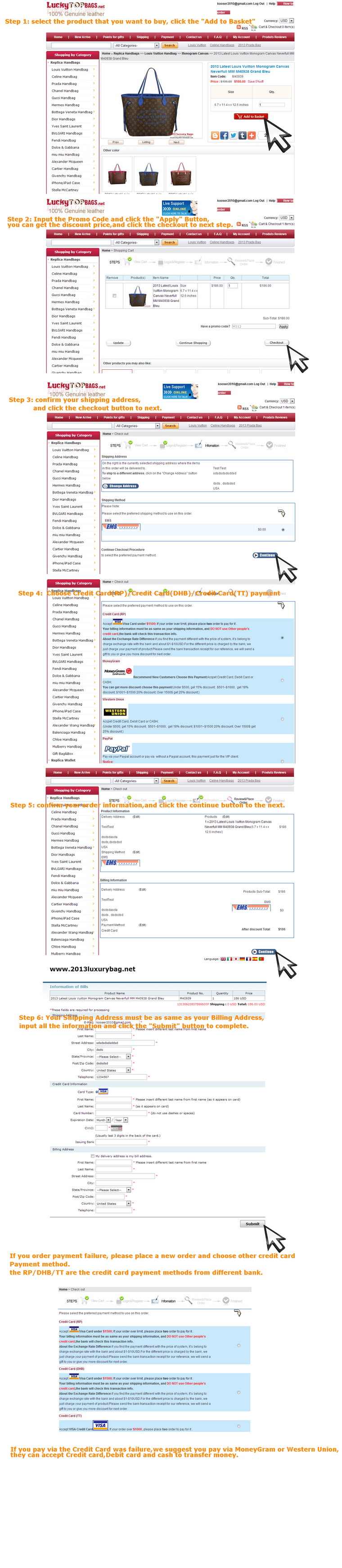 5.Contact our customer service by email and send her the payment information. Email: niceday8810@hotmail.com |