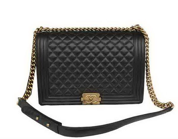 Home » Replica Handbags >> Chanel Handbag >> Chanel Le Boy >> Chanel Boy Flap Shoulder Bag Original Black Sheepskin Leather A67087 Gold