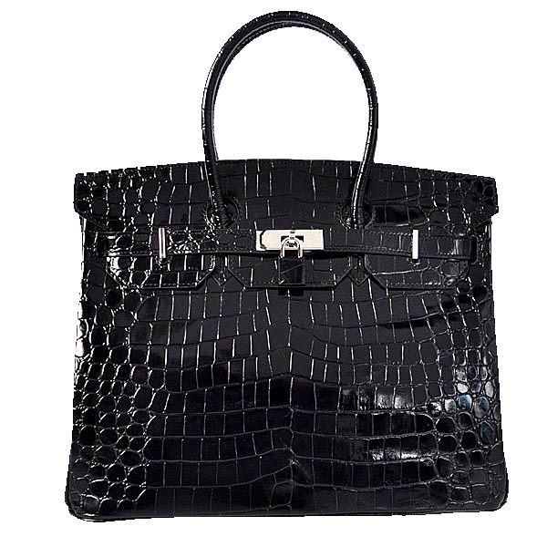 Home » Replica Handbags >> Hermes Handbag >> Hermes Birkin 35CM >> Hermes Birkin 35CM Tote Bag Black Iridescent Croco Leather Silver