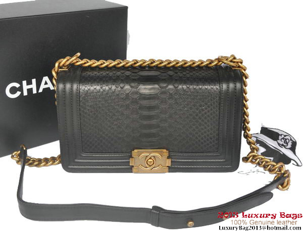 Home » Replica Handbags >> Chanel Handbag >> Chanel Le Boy >> Boy Chanel Flap Shoulder Bag Python Leather A66095 Black