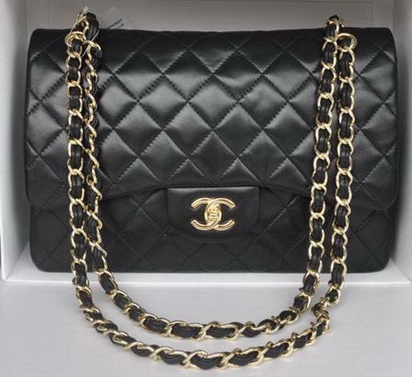 Home » Replica Handbags >> Chanel Handbag >> Chanel Classic Bag >> Chanel Jumbo Double Flaps Bags Black Sheepskin Leather A36097 Gold