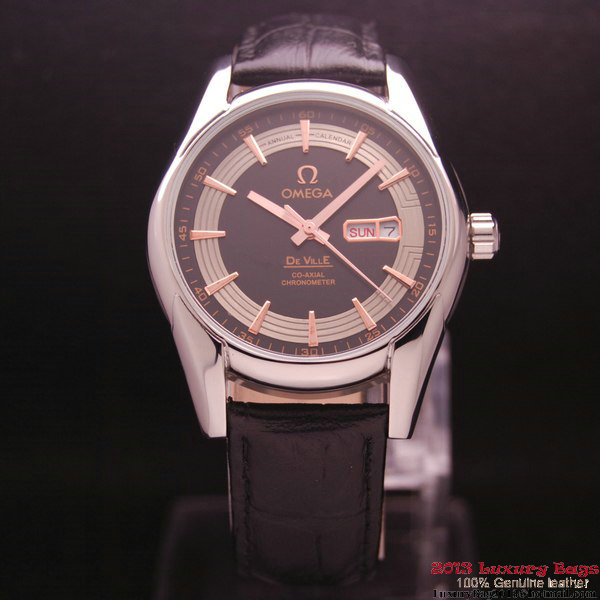 OMEGA DE VILLE HOUR VISION ANNUAL CALENDAR Steel on Black Leather Strap OM77106